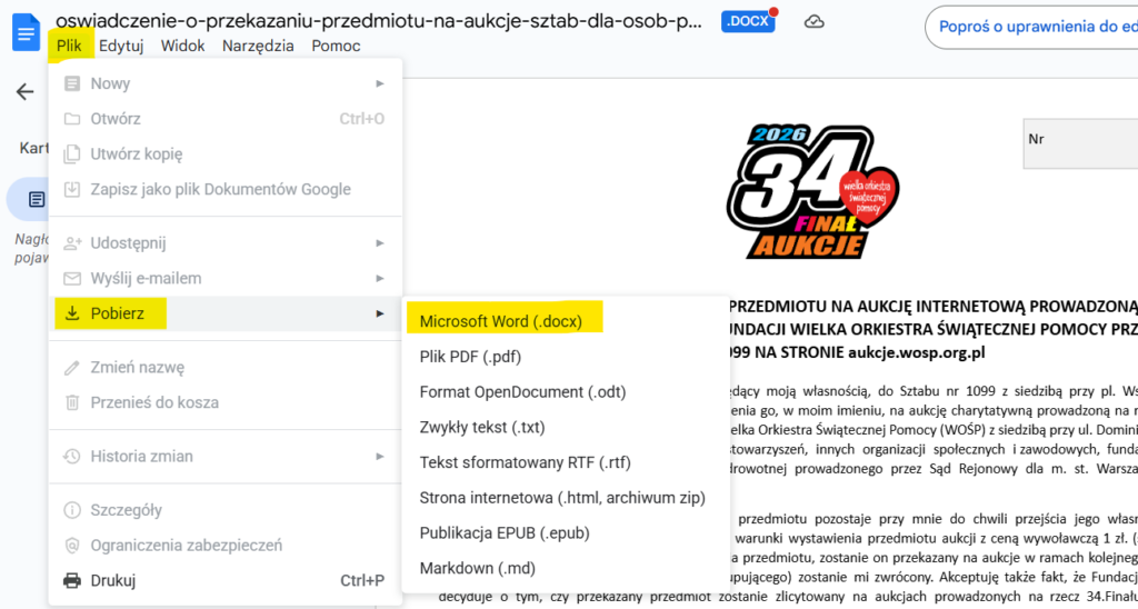 – Konieczne będzie przekazanie nam oświadczenia o przekazaniu daru. Prześlij nam skan, zdjęcie lub przekaż osobiście wydrukowane oświadczenie.